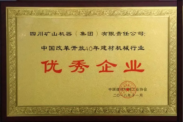 團(tuán)榮獲“中國改革開放40周年建材機(jī)械行業(yè)優(yōu)秀企業(yè)”榮譽(yù)稱號。