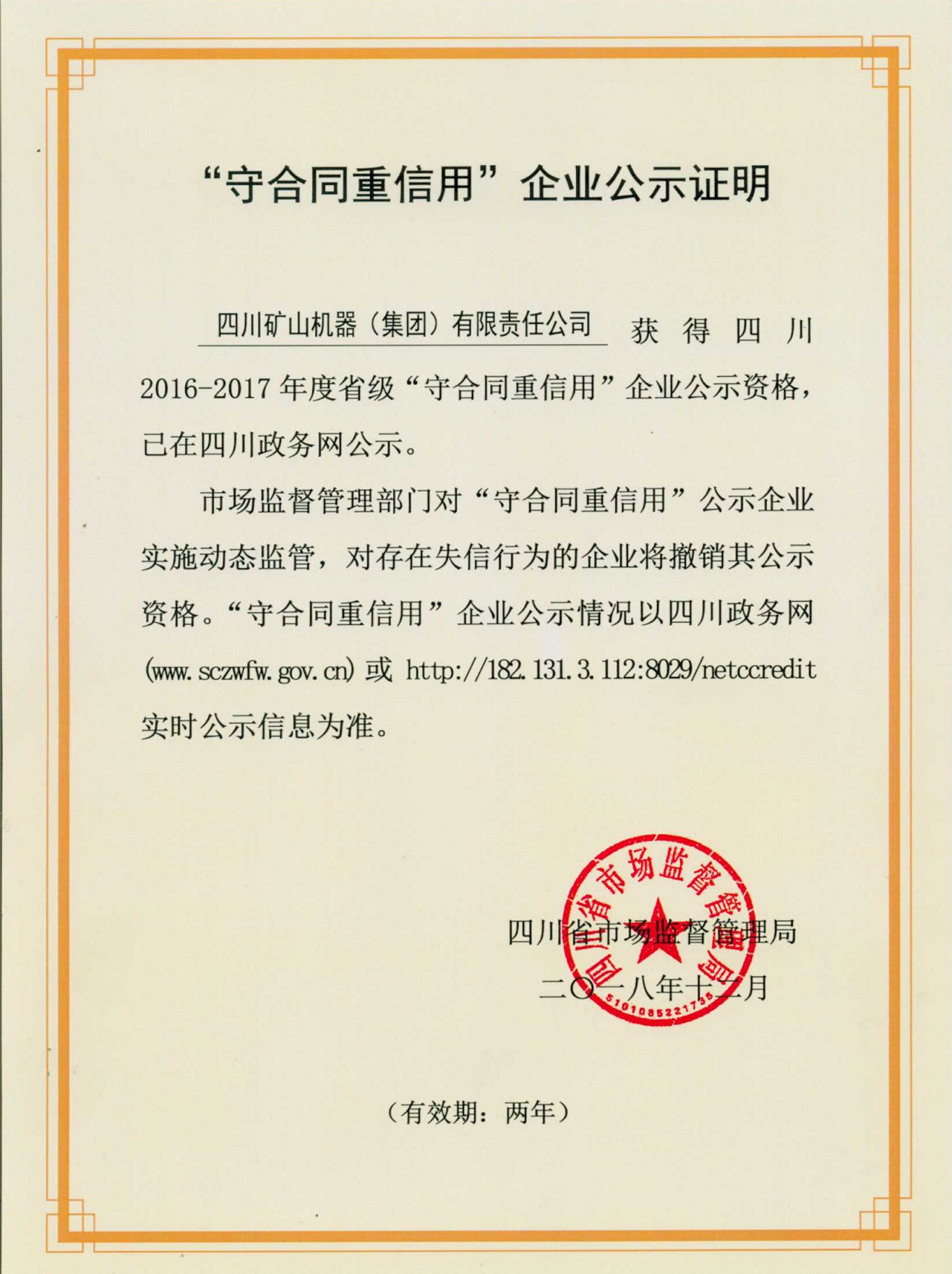 川礦集團(tuán)獲得省級(jí)“守合同重信用”企業(yè)公示資格